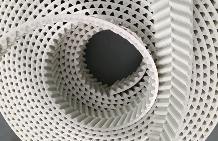 在现代化仓储物流体系中,提升机作为高效、快速、稳定地实现物料垂直运输的关键设备,其性能与可靠性直接影响着整个物流体系的运作效率。随着技术的不断进步,聚氨酯人字齿同步带作为一种新型的传动元件,在仓储物流提升机中得到了广泛的应用,并展现出其独特的优势。聚氨酯人字齿同步带以其出色的耐磨性、抗拉伸性和高传动效率等特点,成为了提升机传动系统的理想选择。在仓储物流应用中,提升机需要频繁地升降物料,因此传动带必须具备足够的耐用性和稳定性。聚氨酯材料的高强度和高韧性确保了同步带在长时间、高负荷运行下仍能保持优异的性能。